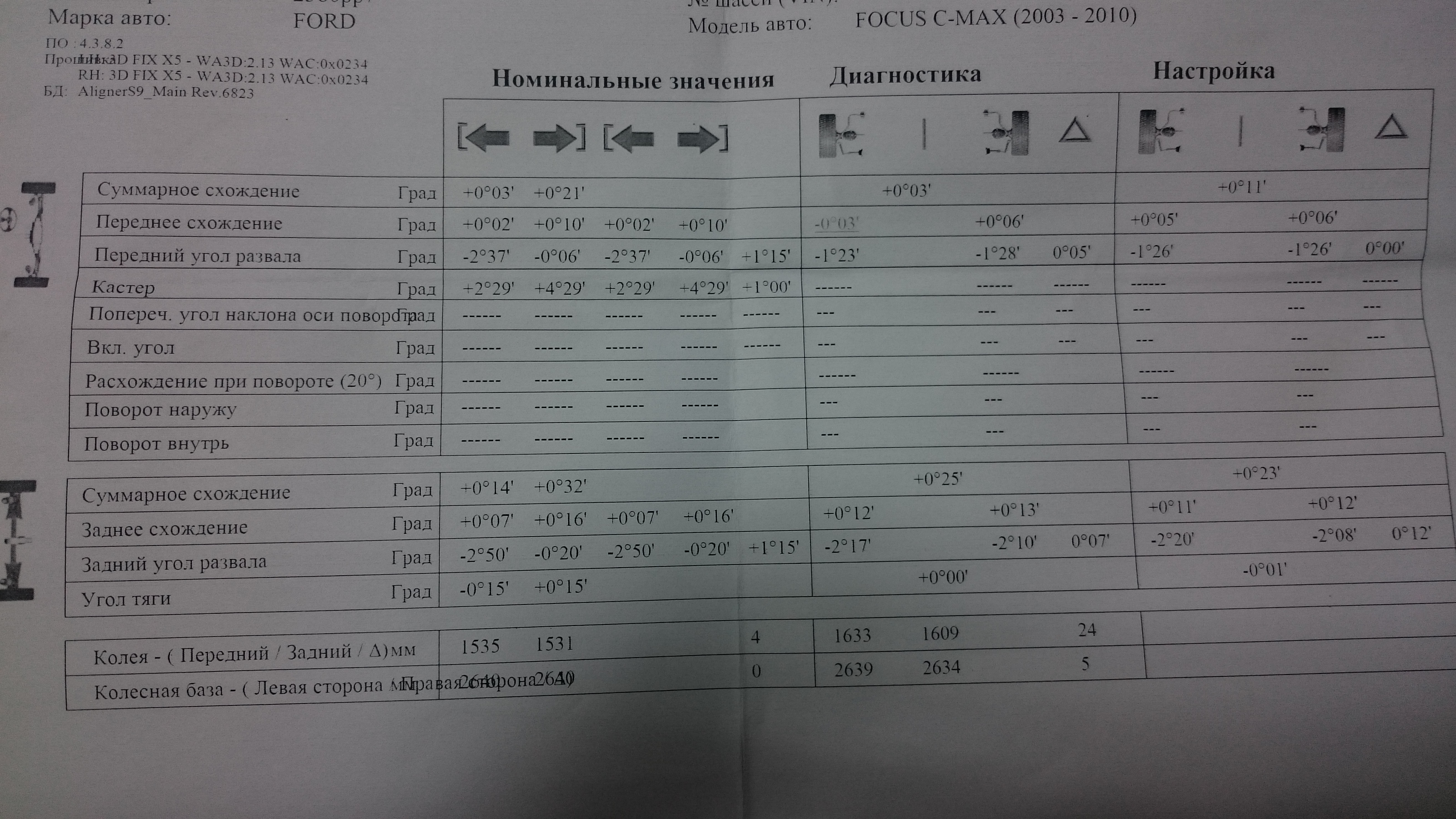 - измерение углов установки колес с выдачей отчета на бумажном носителе