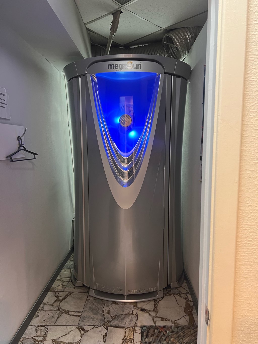 Кабинка №2. Вертикальный солярий премиум-класса MegaSun T200W Pure Energy! Германия 52 лампы по 200W; AquaColl; MegaVoice; Music….