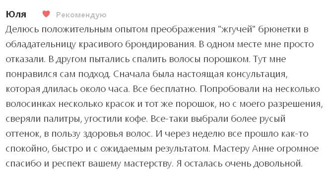 В салоне "Де Пари Шарм" приятная атмосфера, всегда вкусный чай кофе, душевный прием и опытные профессионалы парикмахеры. Они не просто окрашивают - они придают образ, при этом заботятся о здоровье Ваших волос.