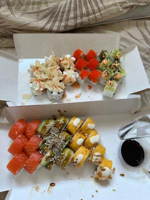 Роллы хороши, но не доложили 2 соуса, обнаружил только дома, не приятно. Короче доверяй, но проверяй....