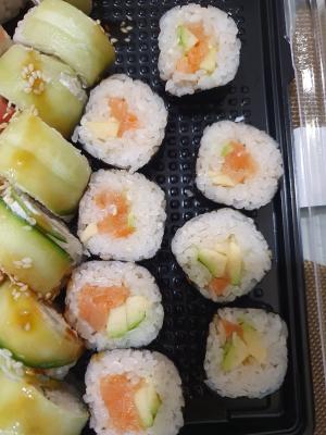 К сожалению, разочарование. Рис сухой, суши маленькие, начинки еще меньше.