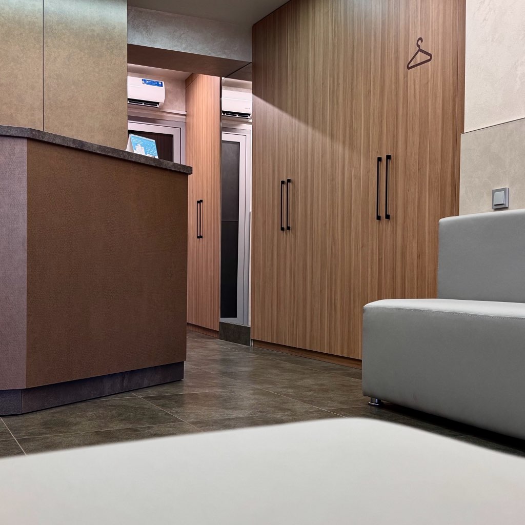- бактерицидные медицинские рециркуляторы постоянно работают на рецепции и в кабинетах, обеззараживая воздух, убивая вирусы и бактерии
