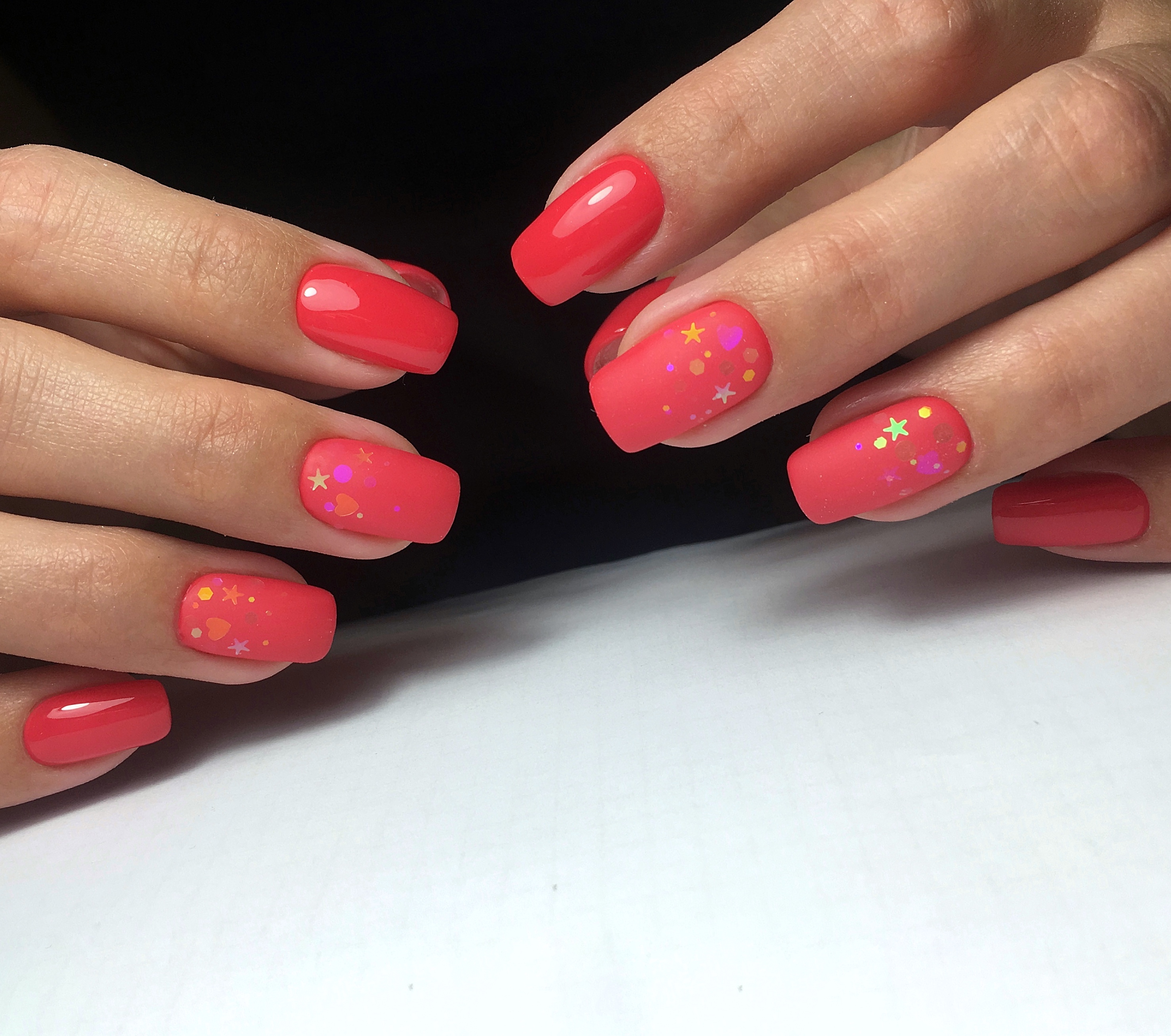 - снятие старого покрытия фрезой, придание формы ногтям, гигиеническая обработка кутикулы и боковых валиков аппаратным способом с использованием абразивных стерильных фрез, или комбинированным способом (фрезы + ножнички/кусачки), однотонное покрытие ногтей гель-лаком, масло для кутикулы