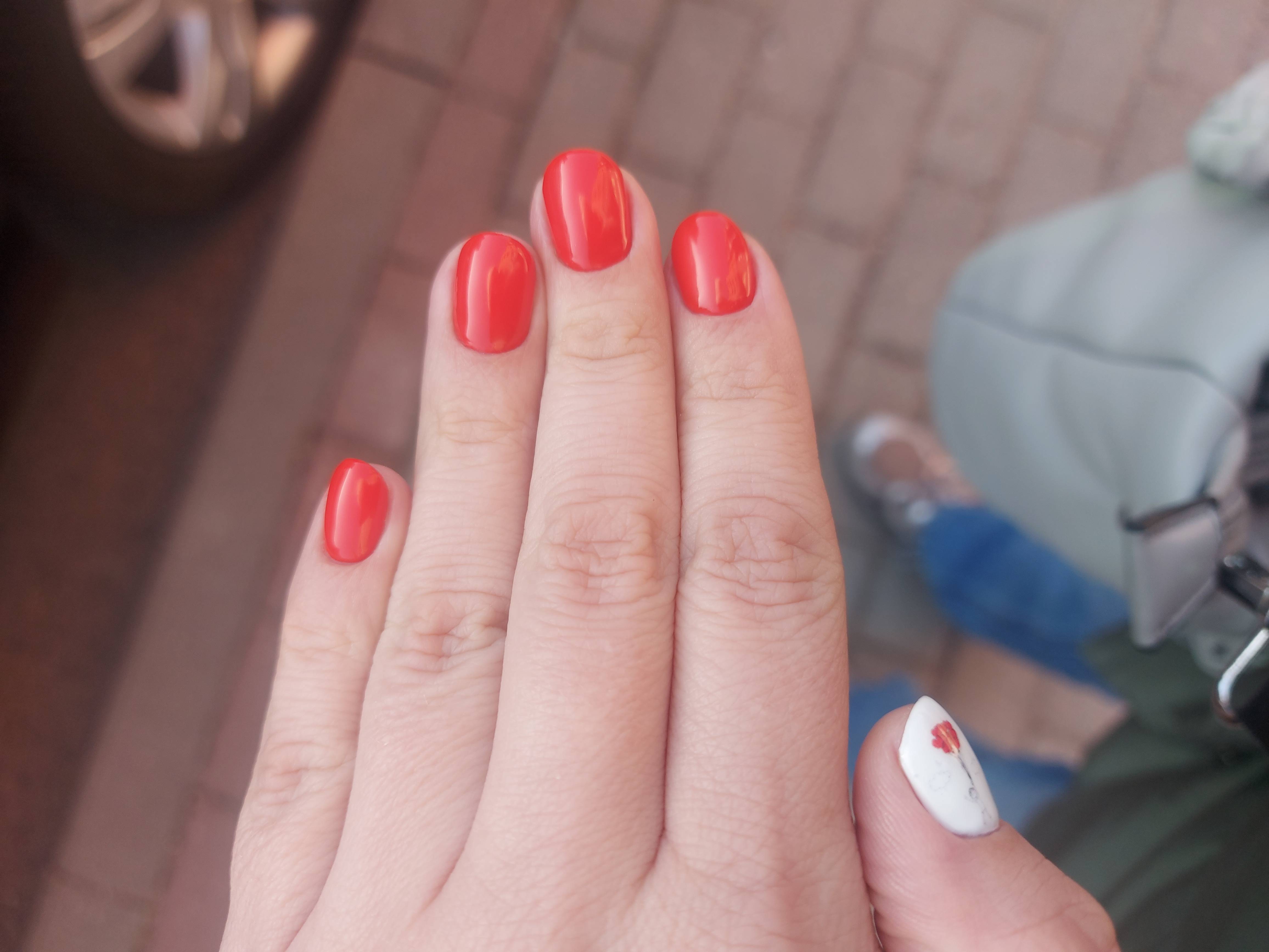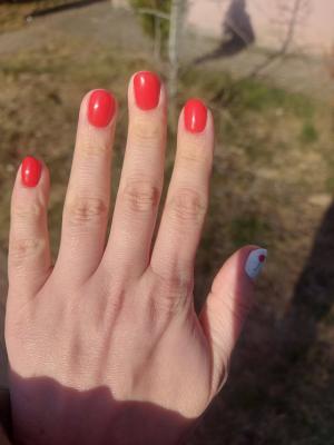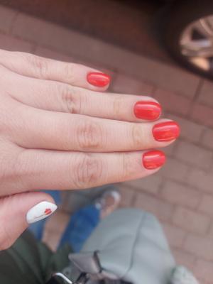 Описание процедуры: снятие старого долговременное покрытия фрезой, придание формы ногтям, гигиеническая обработка кутикулы и боковых валиков аппаратным способом с использованием абразивных стерильных фрез, или комбинированным способом (фрезы + ножнички/кусачки), однотонное покрытие ногтей гель-лаком, масло для кутикулы, массаж кистей с кремом для рук