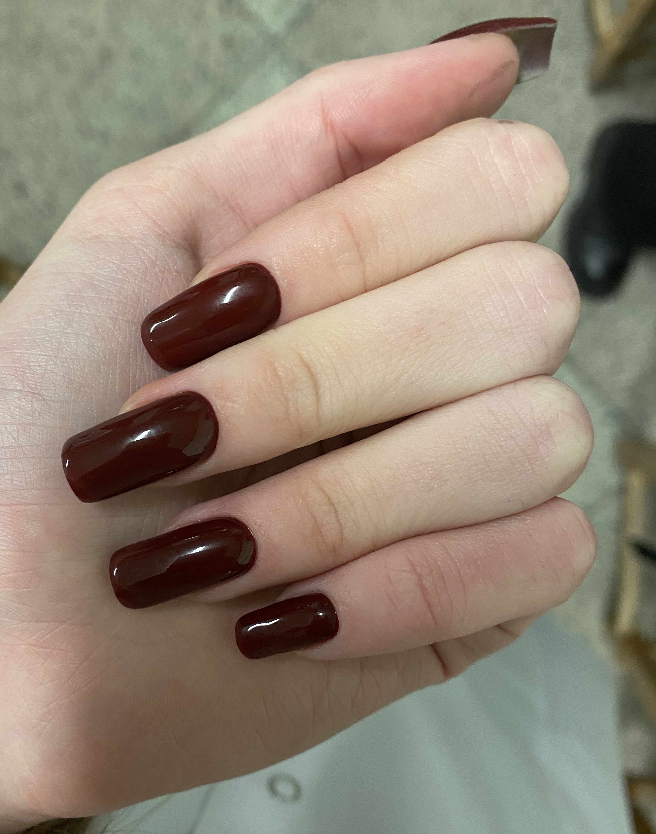 Я выбрала «капризный» лак, который никак не хотел ложиться равномерно. Тут либо вопрос к мастеру о его профпригодности, либо к владельцам, которые закупают лаки и экономят на качестве - 🤷‍♀️