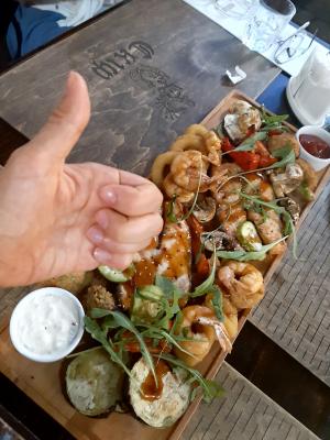 - Промокод дает право на скидку 44% на большой сет в кафе "Скиф"