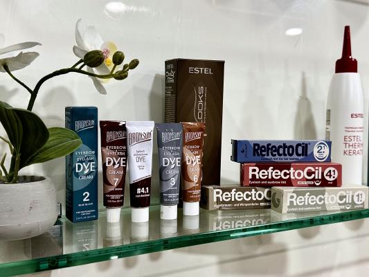 - коррекция и окрашивание бровей профессиональной краской для бровей и ресниц "Ollin" (Россия), "Estel" (Россия): 17 р. 34 р.
