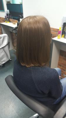 Окрашивание волос в один тон + стрижка + драгоценный уход с жидким золотом + укладка по форме: