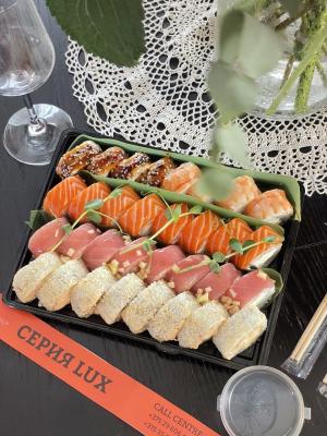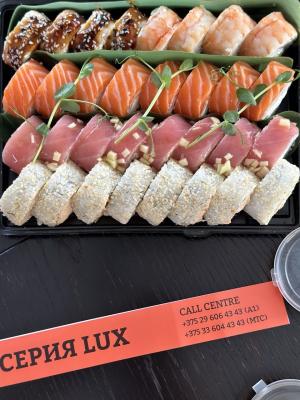 - Промокод дает право на скидку до 60% на премиум суши-сеты и роллы от "LUX SUSHI"