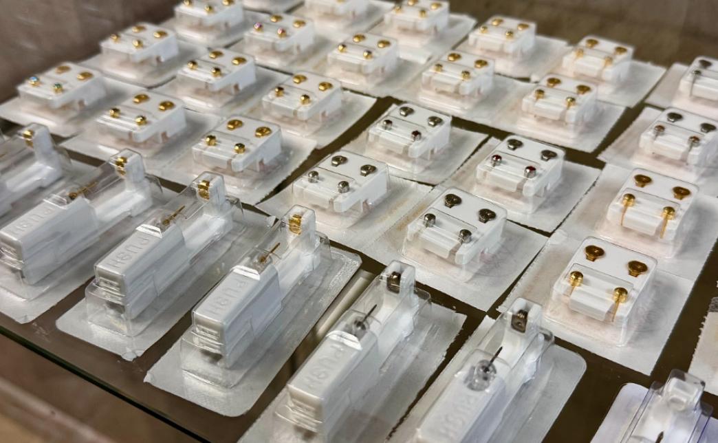 К этой системе прилагается большой ассортимент медицинских серег-игл на Ваш выбор.