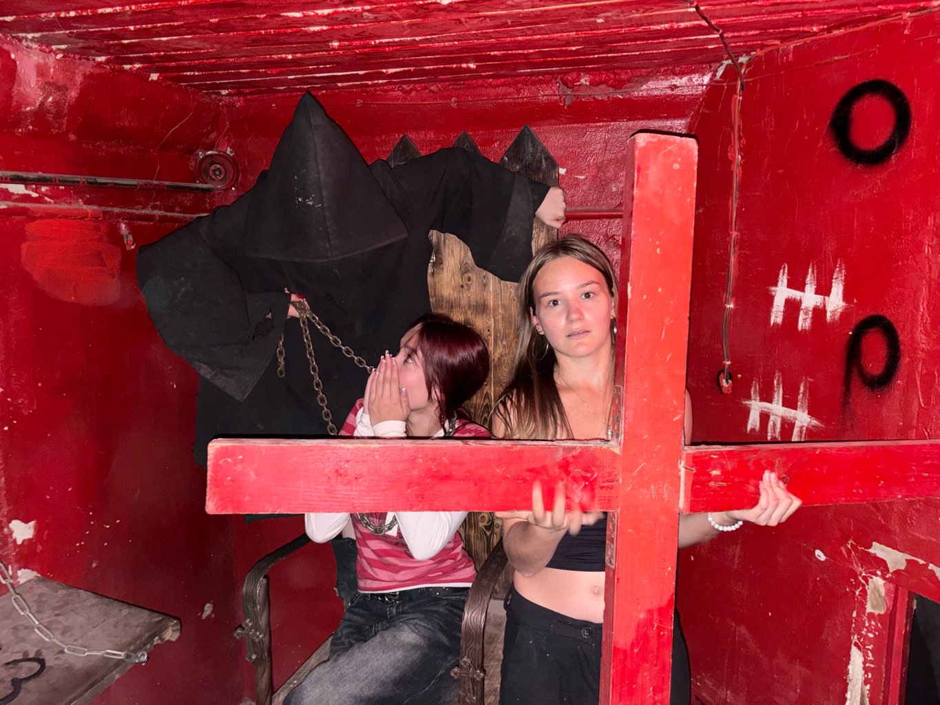 Монашка на лайте душила, за каждый момент предупреждение, мы зашли не в открытую дверь и нас выгнали. Пол квеста сидели на коленях, света нет и заставляют читать молитвы даже если ты их не знаешь,администраторы курят в помещении. Полно открытых дверей, куда нельзя идти