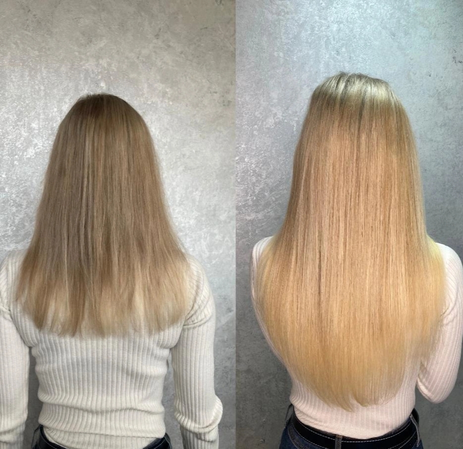 Раньше наращивала всю голову на короткую стрижку, а Наталья безопасным наращиванием отрастила мне волосы.