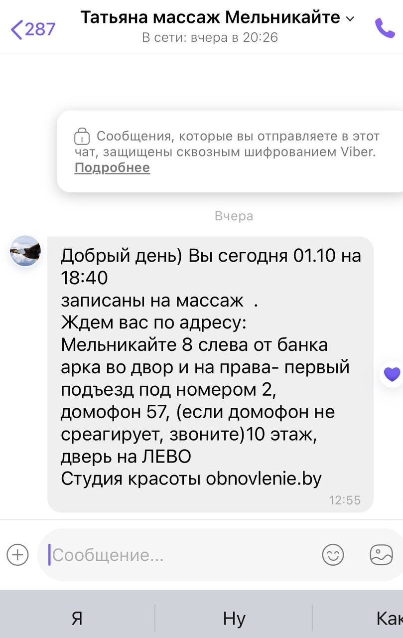 Делала массаж спины и лицa. Осталась в полном восторге от профессионализма Татьяны. Спасибо большое!