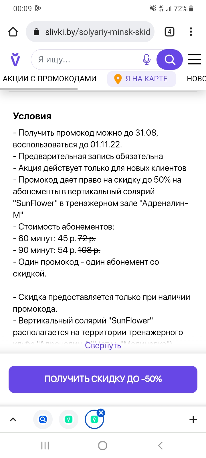 - Промокод также дает право на скидку до 33% на абонементы в вертикальный солярий "SunFlower" для всех клиентов