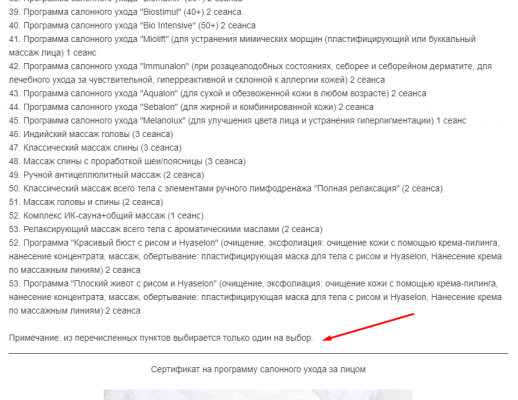 - возможность приобретения подарочных сертификатов на любую услугу (комплекс услуг)