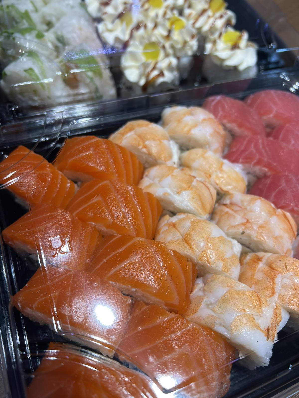 Состав: филе лосося, угорь, креветка тигровая, авокадо, огурец, сыр, рис, нори