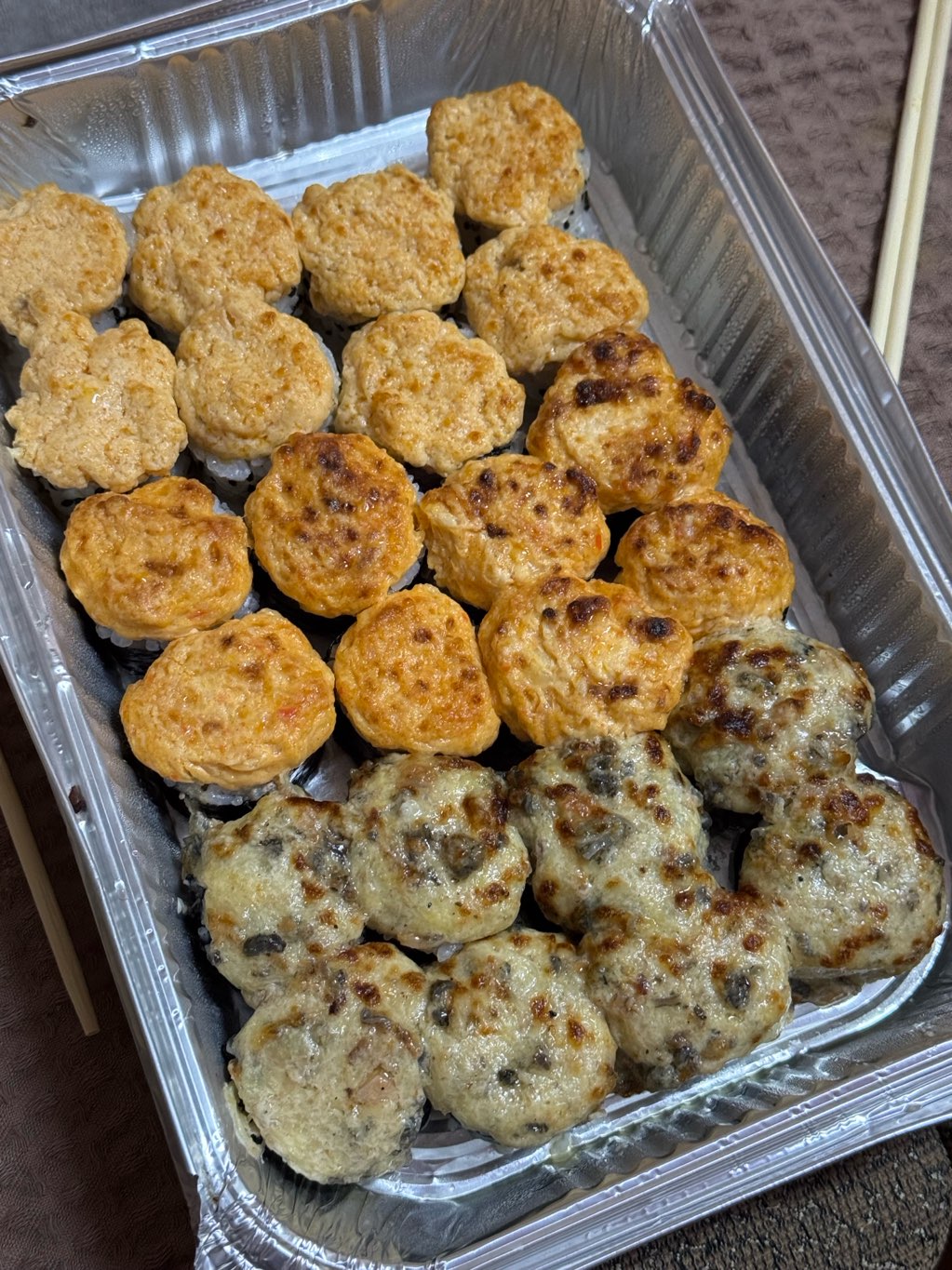 - ролл "Мидии терияки под сырной шапочкой": мидии, морковь терияки, кунжут, крем-сыр, соус терияки, нори, рис - 8 шт.