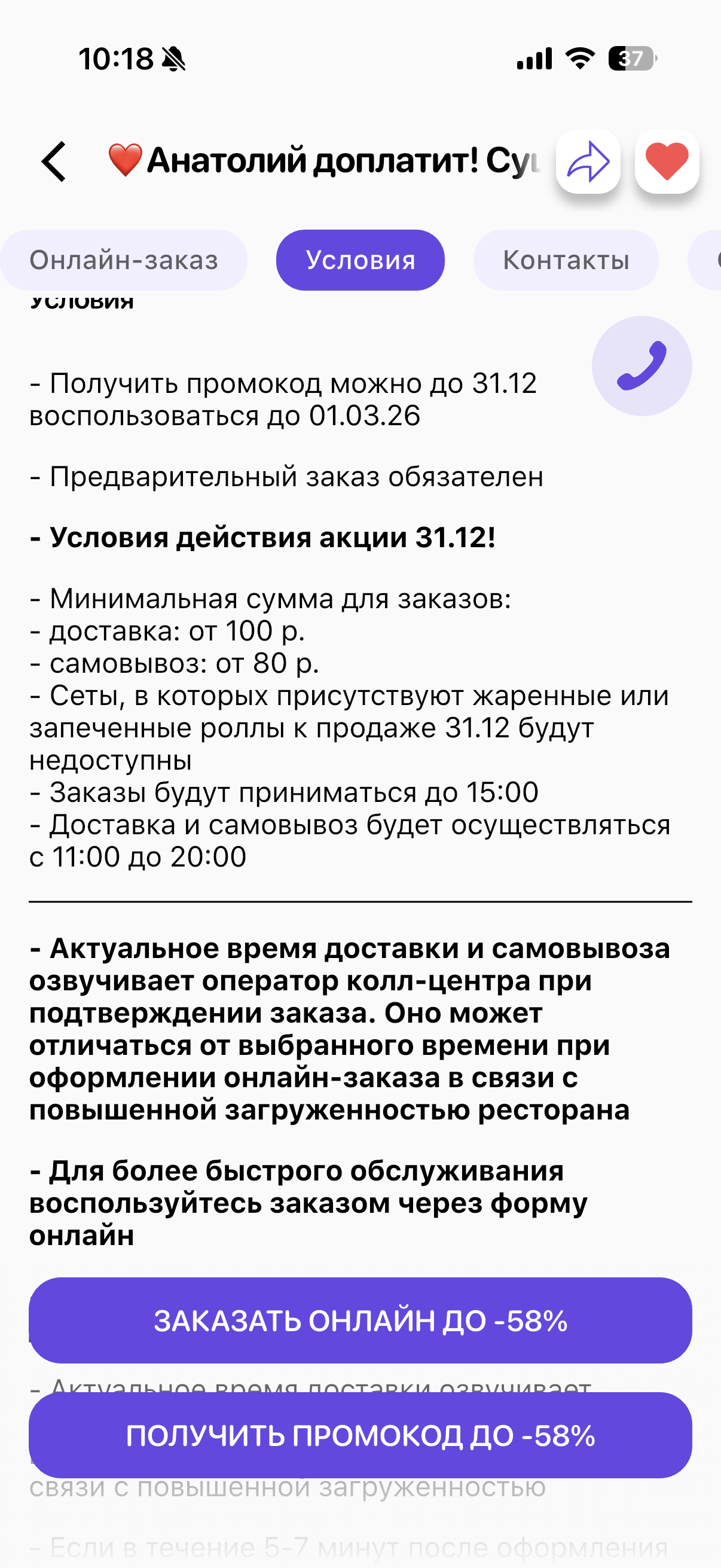 - Промокод дает право на скидку до 58% на суши-сеты от "THE СУШИ"