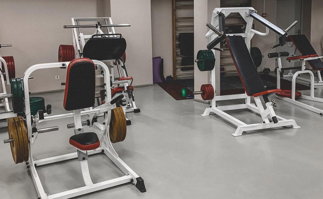 - Тренажёрный зал полностью оснащён профессиональным оборудованием